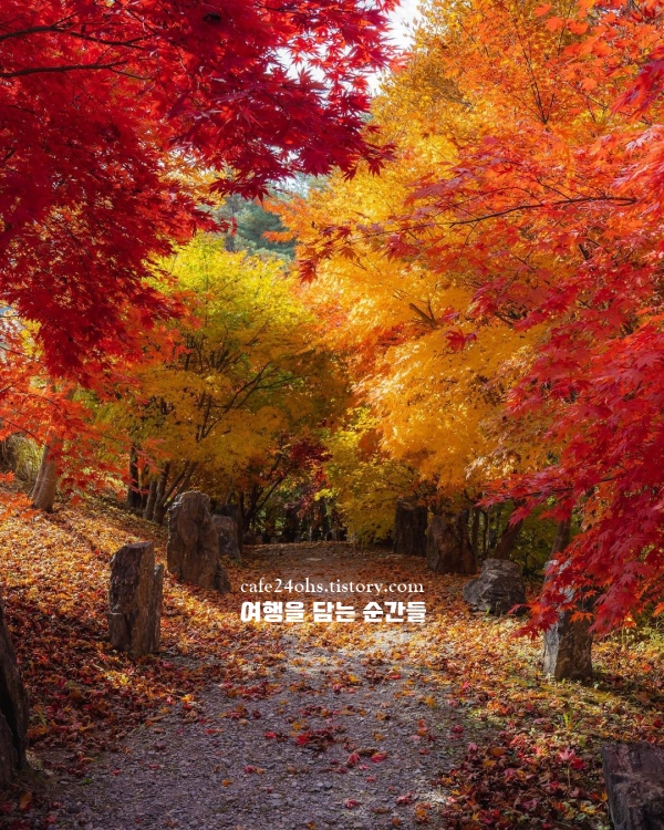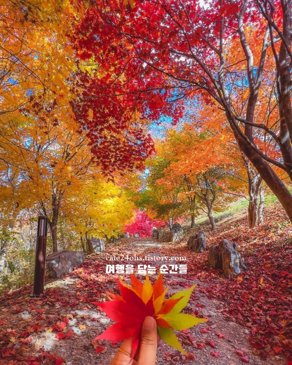 카메라보다 눈으로 담고 싶은 풍경이었고 사진보다 감성의 온도가 높은 공간입니다. 가을 단풍이 물든 숲길을 따라 오르면 가리왕산의 능선이 펼쳐지고, 그 위로 테마 정원들이 잔잔한 풍경화처럼 놓여 있어요. 운동화만 신고도 부담 없이 오를 수 있는 숲길이라서 초보자도 편안하게 힐링할 수 있습니다. 숙박이 가능한 글램핑·펜션도 정원 안에 마련돼 있어 별빛 가득한 밤을 누릴 수도 있죠. 가을 강원도 여행 갈만한곳 10월 중 한 곳을 꼽는다면, 정선의 이 정원은 조용히 마음을 들여다보기 좋은 선택이 될 거예요.