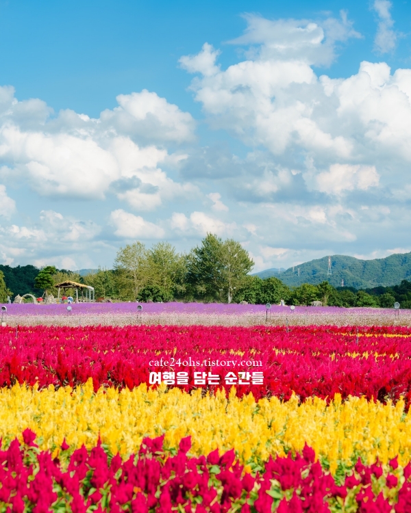 꽃밭 안쪽으로는 나무 데크 산책길과 쉼터, 포토존이 적절히 배치돼 있어 어르신, 아이 동반 가족 모두 편하게 돌아볼 수 있어요. 주차장은 무료이며 넉넉하지만, 주말에는 비교적 붐비는 편이니 오전 입장을 추천합니다. 키 큰 코스모스 사이에 드는 순간 다른 세상 같고 꽃의 종류가 다양하고 시기마다 분위기가 달라 두 번 가도 전혀 다른 사진이 나오는 곳으로도 유명하답니다.