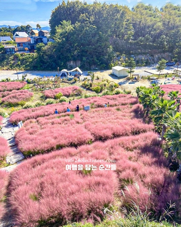 핑크뮬리는 9월 말부터 개화하기 시작해 10월 중순이 가장 절정입니다. 내부에는 작은 카페와 꽃사진 전시 갤러리도 운영 중이며, 화장실 및 쉼터 시설도 잘 마련돼 있어 머물기 편안합니다.