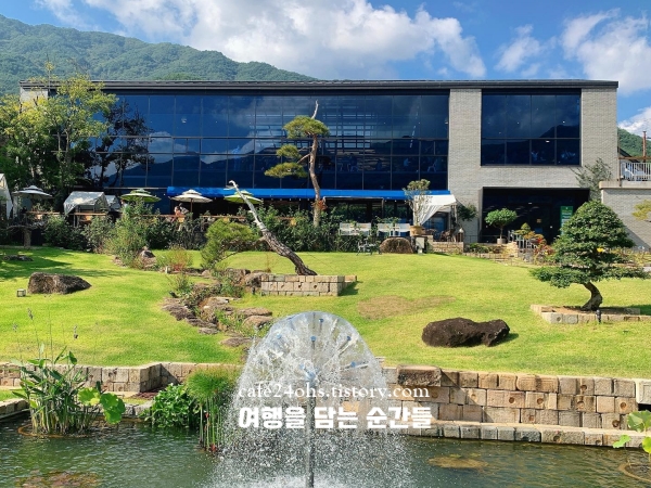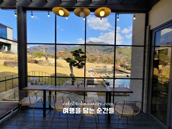 마지막으로 소개할 하동 가볼만한곳 베스트 10 장소는 화개면의 넓은 대지에 조성된 더로드101이에요. 정원이 예쁘게 가꾸어져 있어 마치 커다란 식물원 안에 있는 카페에 온 기분이 들고, 카페 내부에서도 커다란 유리창을 통해 하동의 풍경을 감상할 수 있답니다.