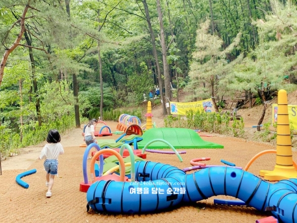 도토리숲키즈파크는 자연 속에서 아이들이 마음껏 뛰어놀 수 있는 세종 아이들과 가볼만한곳 베스트 10 공간이에요. 숲 한가운데 자리하고 있어 햇볕이 강한 날에도 캐노피 덕분에 그늘이 많고, 바닥은 흙과 잔디가 섞여 있어 부담 없이 뛰어다닐 수 있었어요. 미꾸라지 잡기, 지하수로 채운 물놀이터, 동물 먹이 주기 체험까지 체험이 다양해서 오전부터 오후까지 알차게 시간을 보낼 수 있었습니다. 물에 발만 담가도 몸이 확 식는 느낌이라 여름철엔 아이도 어른도 쉬어가기 딱 좋았습니다.