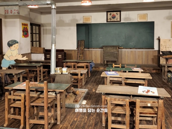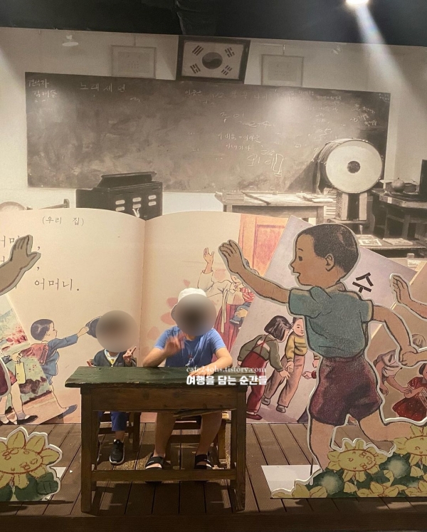 전시를 따라가다 보면 70~80년대 초등학교 교실을 재현해둔 공간도 나와요. 낡은 책걸상과 종이 필통, 그리고 우리가 어릴 때 배웠던 교과서 속 인물들이 그대로 전시되어 있어 부모 세대라면 누구나 잠시 멈춰서게 될 거예요. 아이들은 요즘과는 다른 교실 모습을 신기해하고, 어른들은 그 안에서 추억을 되짚게 되는 구조라 세종 가볼만한곳 베스트 10 가족 단위로 오기에 좋았습니다. 규모는 크지 않지만, 자료 하나하나에 손길이 닿아 있는 게 느껴졌습니다.