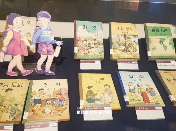 실내 공간이라 날씨 영향을 받지 않고, 입장료도 따로 없어 부담 없이 들어갈 수 있었죠. 이름 그대로 ‘교과서’를 주제로 한 박물관인데, 책을 진열해놓은 게 아니라 시대별 교과서의 변화 과정과 함께 그 시절을 살았던 사람들의 생활 방식까지 자연스럽게 엿볼 수 있도록 전시가 구성돼 있었습니다.