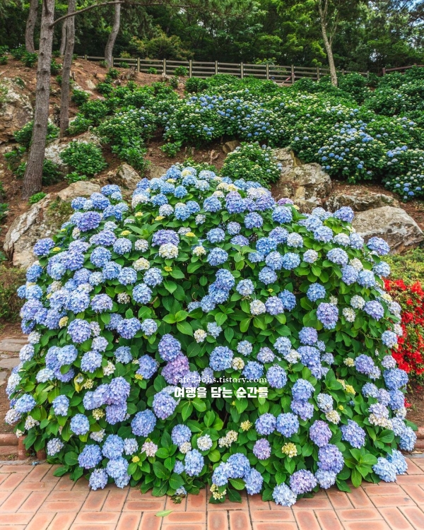평강랜드는 산 속 정원처럼 조용하게 열려 있다. 입구를 지나면 바로 꽃밭이 보이진 않고, 한참을 걸어야 수국이 피어 있는 구간에 닿는다. 길이 돌길이라 조금 울퉁불퉁하지만 수국은 종류도 색도 다양했고, 목수국은 키가 커서 그늘이 되고, 산수국은 사람 눈높이에 맞춰 자라 있었다. 잘 정돈된 느낌은 아니지만, 오히려 그게 이 정원의 분위기였다. 꽃도, 사람도, 나무도 각자 자기 자리에서 자라는 느낌이랄까.