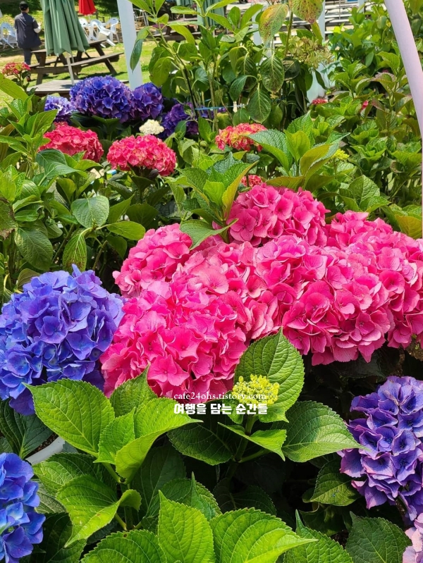 수국 축제는 6월 중순부터 시작돼서, 주말이면 가족 단위로 붐비는 6월 국내 여행지 추천 장소다. 수국정원 깊숙한 쪽엔 잠깐 앉을 수 있는 나무 테이블이 몇 개 있고, 그 앞에 열린 꽃밭이 풍경처럼 펼쳐져 있다. 평강랜드는 원래 약초원으로 시작한 곳이라 그런지, 중간중간 특이한 식물들이 자라고 있는 구간도 있다. 애견도 동반 가능하다.