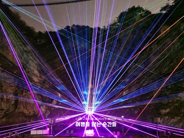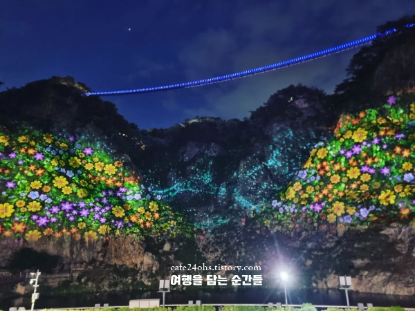 소금산 그랜드밸리의 밤은 낮과는 다른 방식으로 기억에 남는다. 한낮에 출렁다리와 계곡길을 걷고 난 사람들이, 해가 지고 난 뒤 다시 같은 자리에 모인다. 바위는 그대로인데 조명이 달라지고, 물줄기는 리듬을 타며 솟구친다. 나오라쇼는 매주 토요일과 공휴일 전날 저녁, 한탄강 절벽 위를 무대로 펼쳐지는 야간 공연이다. 암벽 위로 설화 영상이 흐르고, 음악과 조명이 엇갈리며 어둠을 밀어낸다. 6월은 아직 밤공기가 시원해서, 한 자리에 오래 앉아 있기 좋다. 여름 성수기가 오기 전, 조용히 즐길 수 있는 시기이기도 하다.